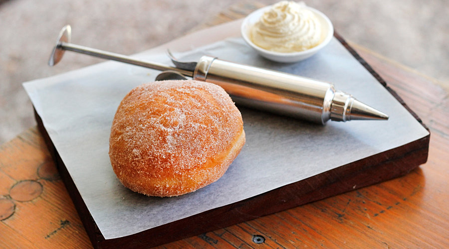 こちらは通りでも人気のカフェ。オリジナルスイーツのドーナツが代表メニューです。しかもこれ、単なるドーナツではなく注文すると付いてくる注射器で自分でソースを注入して楽しむ斬新な仕掛けがあるんです。塩キャラメルやチョコレート、ベリー系のジュレなどいろいろな味のソースがあるので自分好みにカスタマイズできて楽しいですよね♪またその他のカフェメニューも充実しているので、ランチや軽食にもぴったりです。